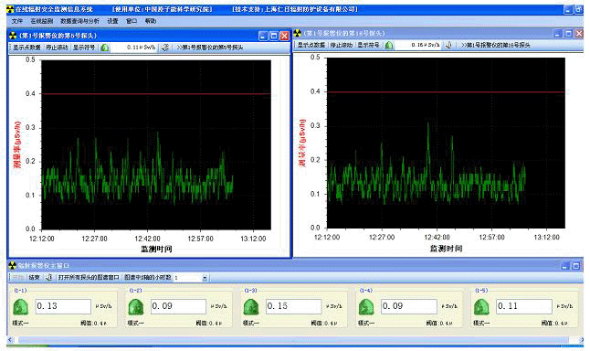 报警主机有高、低两种阈值,当辐射场剂量超标后,REN300主机和控制计算机上的软件将根据超标测量值的大小以及相应的阈值发出不同等级的警示信息或报警信息。